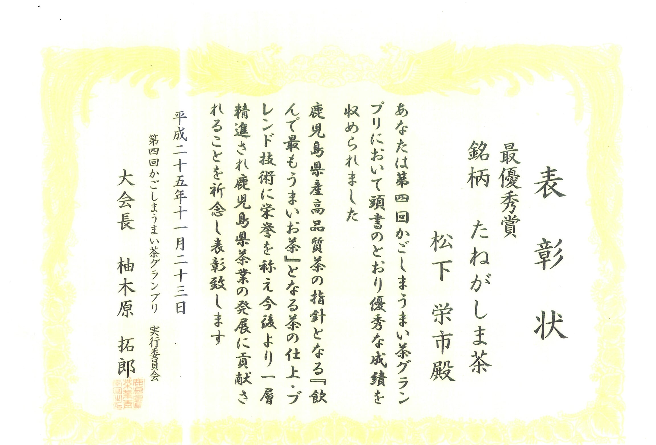 「かごしまうまい茶グランプリ2013」でグランプリを受賞。